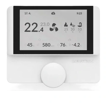 Ovladač obsahuje senzory teploty, relativní vlhkosti a oxidu uhličitého.
